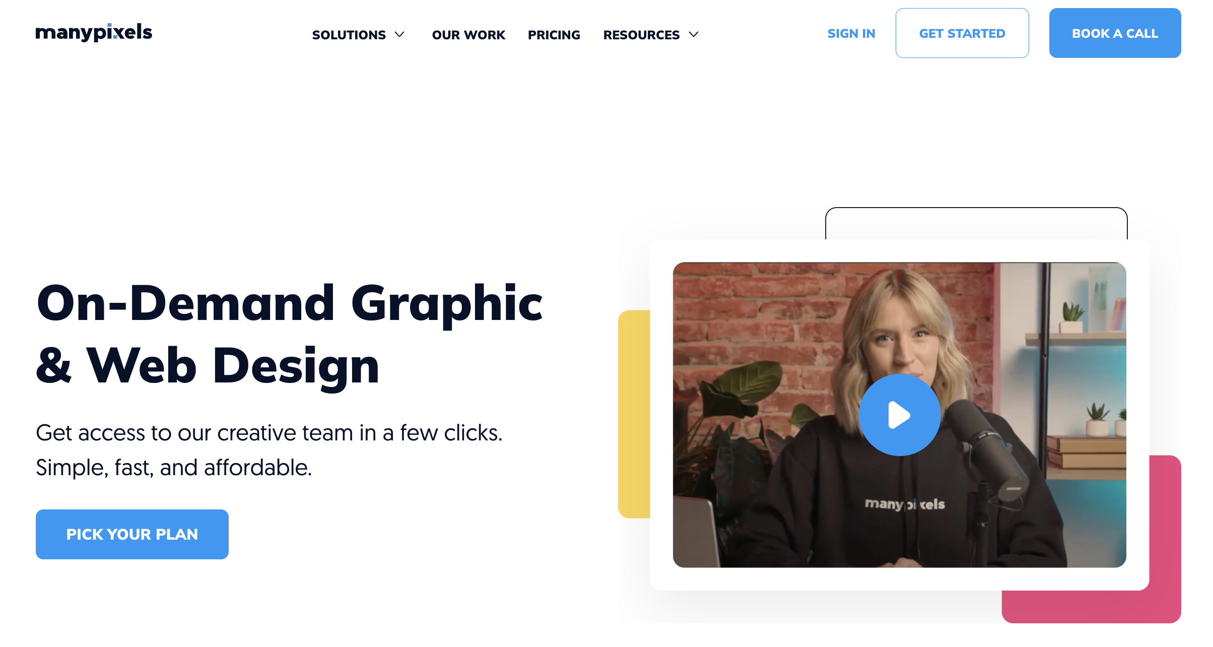 - Graphics + Video - $1697/month: Both, plus dedicated designer, SaaS integrations, same-day delivery