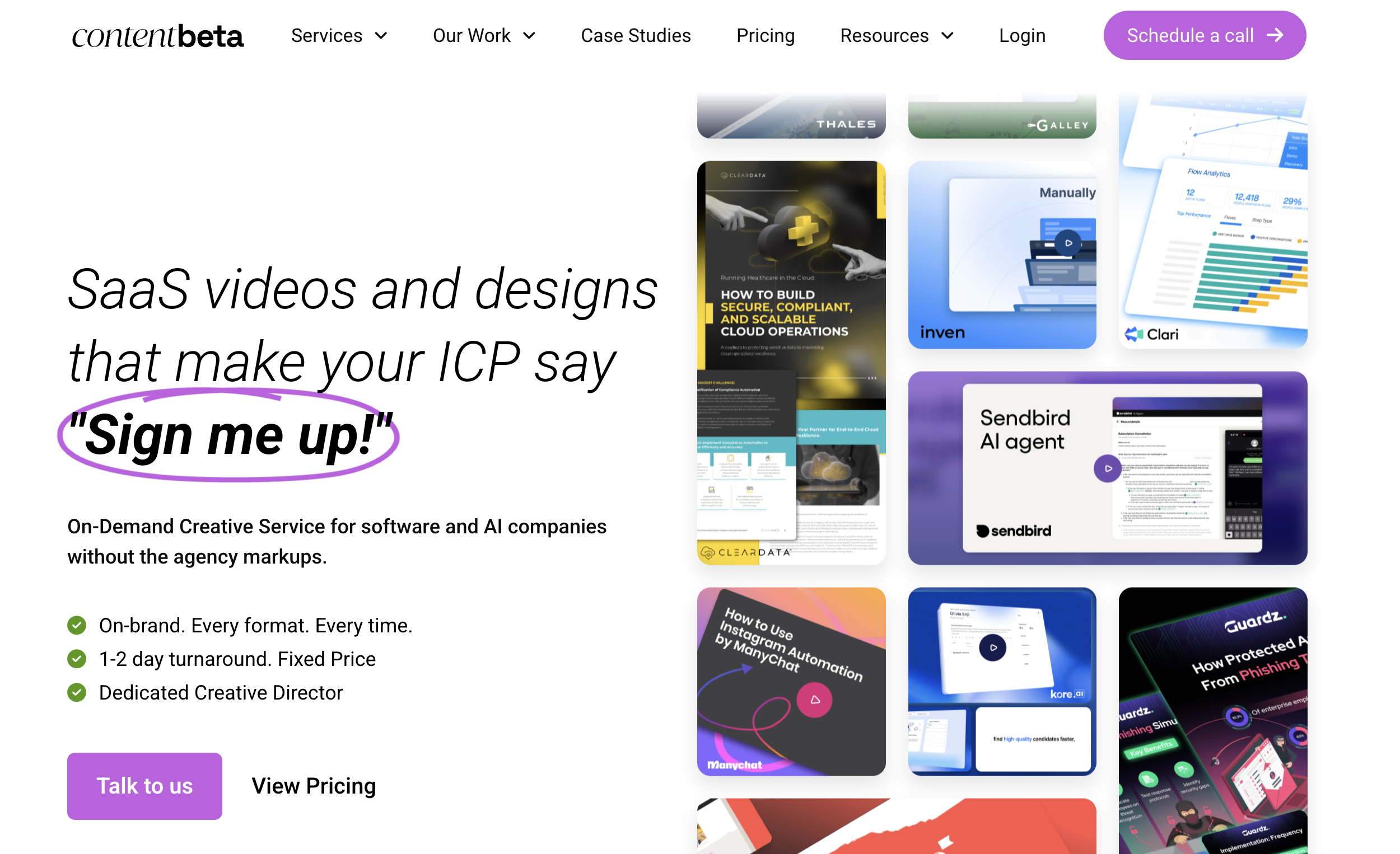 Best for: Funded B2B SaaS startups that need premium video and design. Not a fit for most small businesses or general marketing teams.