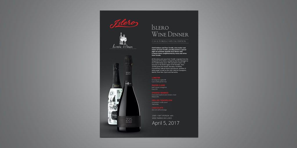 Color doesn't always need to be loud to get attention. If you are a luxury brand or you somehow want to depict royalty or elegance through your flyer design, using shades like black and gray is an incredible idea. For instance, this flyer promoting a wine dinner event looks like an absolute classic piece of art and captures the sophistication of a wine dinner well.